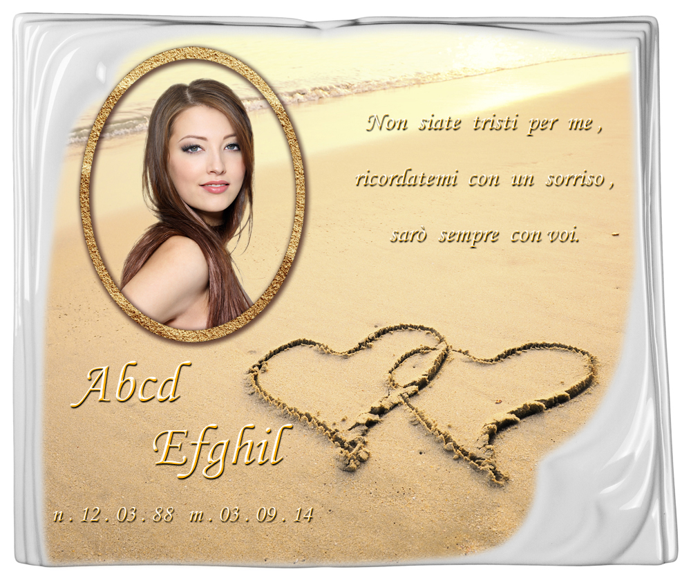 Il supporto è in porcellana , l’immagine è stampata con tecnica transfer a freddo , applicata sul supporto, utilizzando della lacca ceramica e successivamente cotta a 880°C . ottenendo l’inalterabilità a Vita , sia ai raggi U.V sia a qualsiasi agente atmosferico , sia a qualsiasi agente chimico.