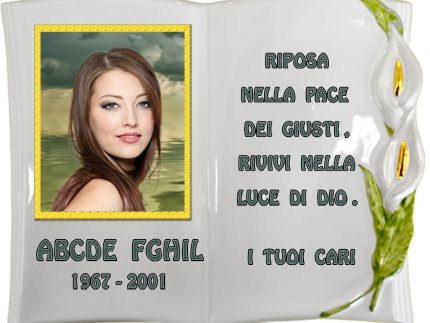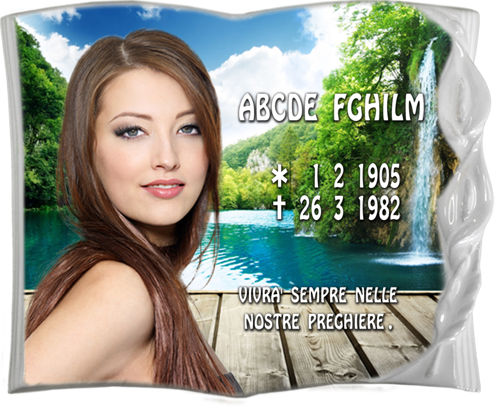 Il supporto è in porcellana, l’immagine è stampata con tecnica transfer a freddo, applicata sul supporto, utilizzando della lacca ceramica e successivamente cotta a 880°C. ottenendo l’inalterabilità a Vita, sia ai raggi U.V sia a qualsiasi agente atmosferico, sia a qualsiasi agente chimico.