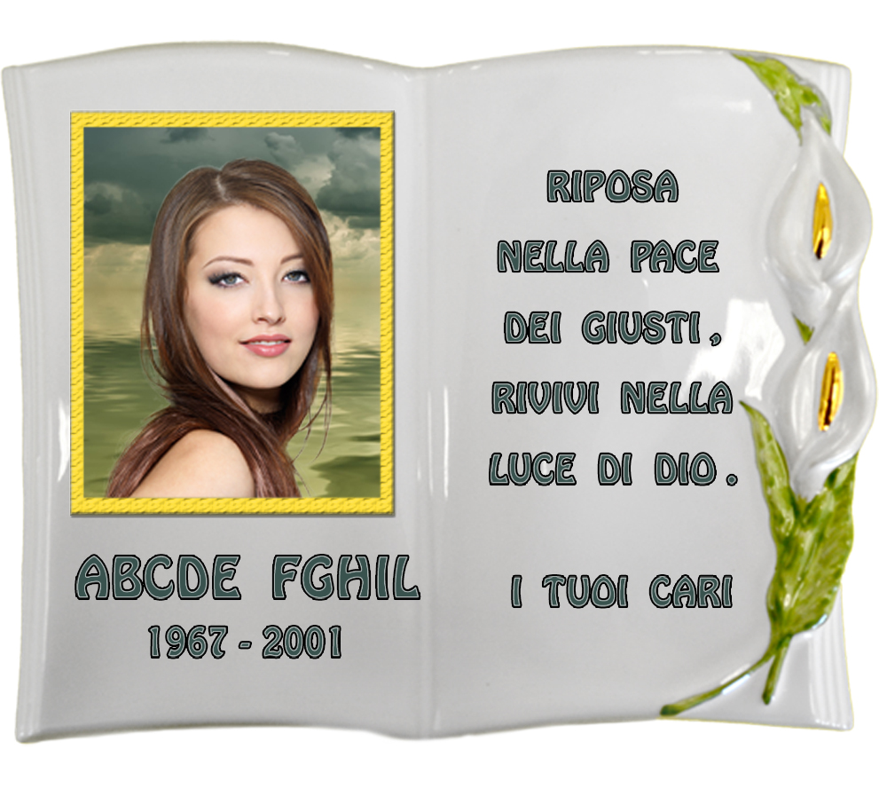 Il supporto è in porcellana, l’immagine è stampata con tecnica transfer a freddo, applicata sul supporto, utilizzando della lacca ceramica e successivamente cotta a 880°C. ottenendo l’inalterabilità a Vita, sia ai raggi U.V sia a qualsiasi agente atmosferico, sia a qualsiasi agente chimico.