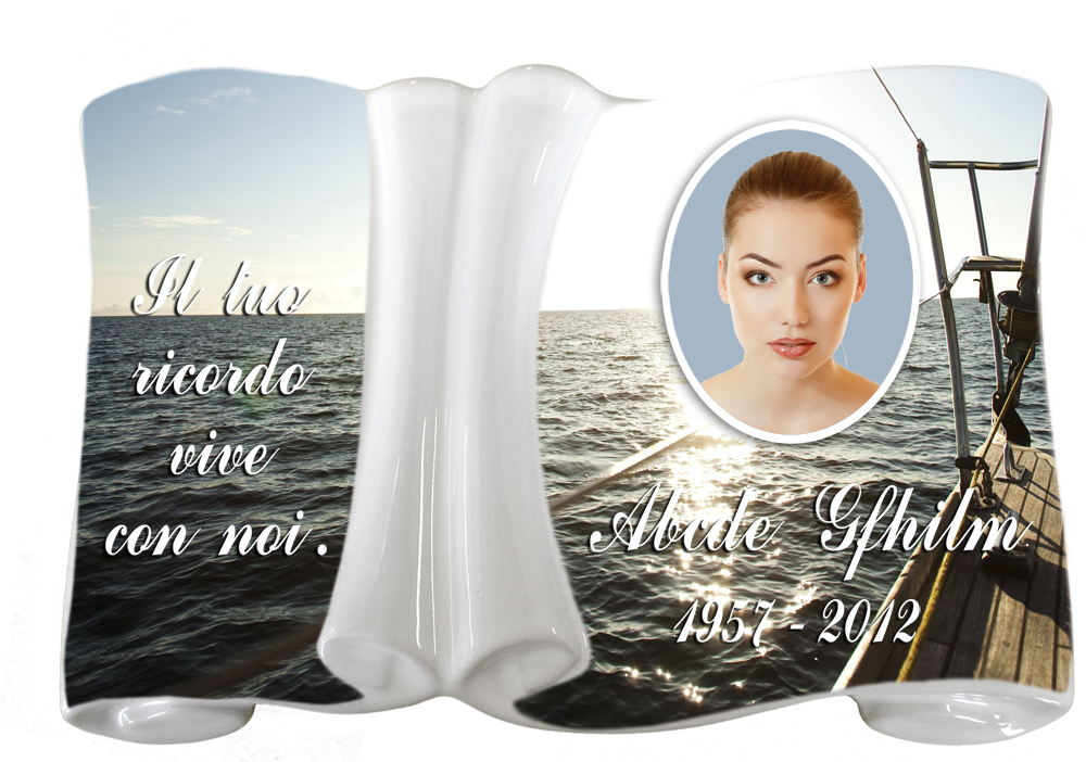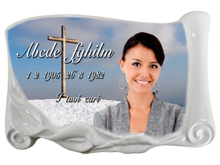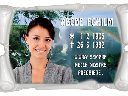 Forma particolare di pergamena, in cui lo spazio destinato alla foto e quello all'epigrafi è diviso in modo artistico.