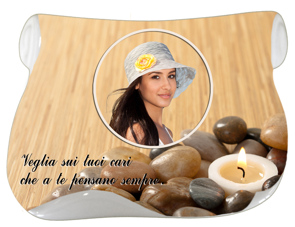 Il supporto è in porcellana, l’immagine è stampata con tecnica transfer a freddo, applicata sul supporto, utilizzando della lacca ceramica e successivamente cotta a 880°C. ottenendo l’inalterabilità a Vita , sia ai raggi U.V sia a qualsiasi agente atmosferico , sia a qualsiasi agente chimico.