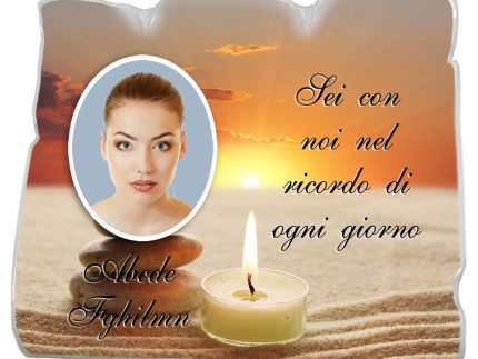 Forma particolare di pergamena, in cui lo spazio destinato alla foto e quello all'epigrafi è diviso in maniera elegante ed artistica.