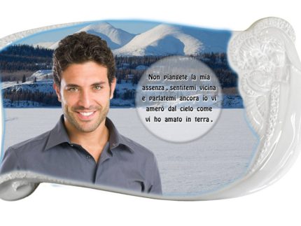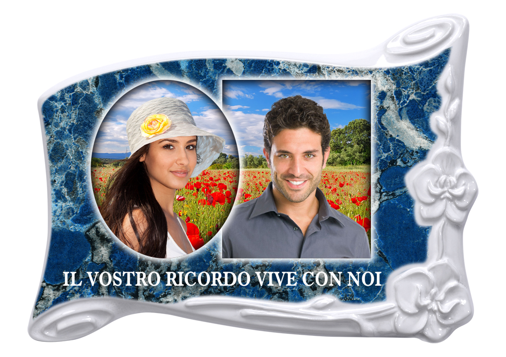 Il supporto è in porcellana, l’immagine è stampata con tecnica transfer a freddo, applicata sul supporto, utilizzando della lacca ceramica e successivamente cotta a 880°C. ottenendo l’inalterabilità a Vita, sia ai raggi U.V sia a qualsiasi agente atmosferico, sia a qualsiasi agente chimico.