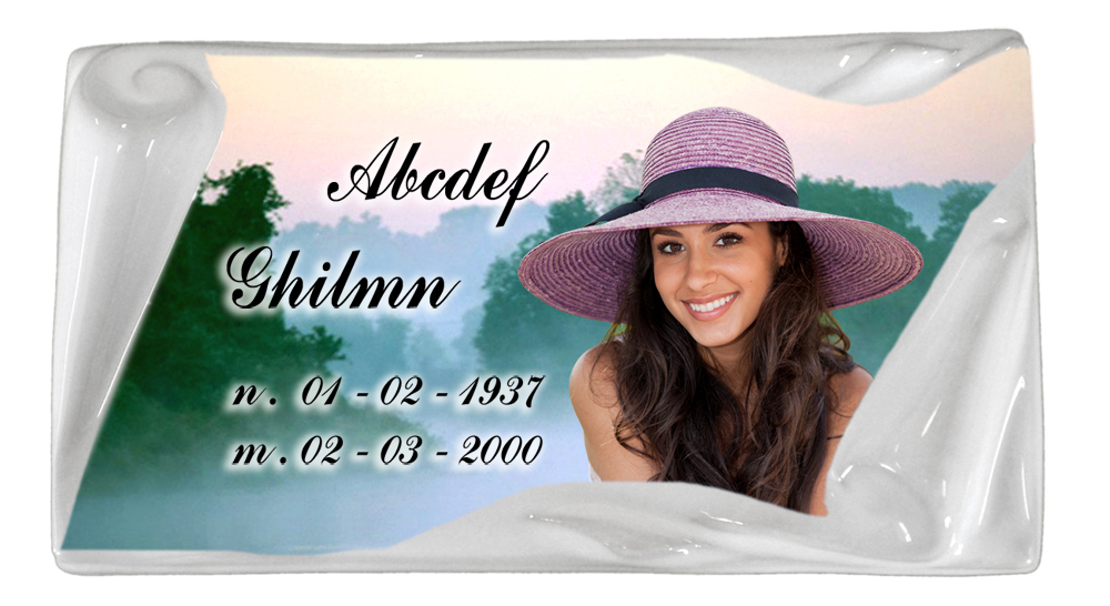 Il supporto è in porcellana, l’immagine è stampata con tecnica transfer a freddo, applicata sul supporto, utilizzando della lacca ceramica e successivamente cotta a 880°C. ottenendo l’inalterabilità a Vita, sia ai raggi U.V sia a qualsiasi agente atmosferico, sia a qualsiasi agente chimico.